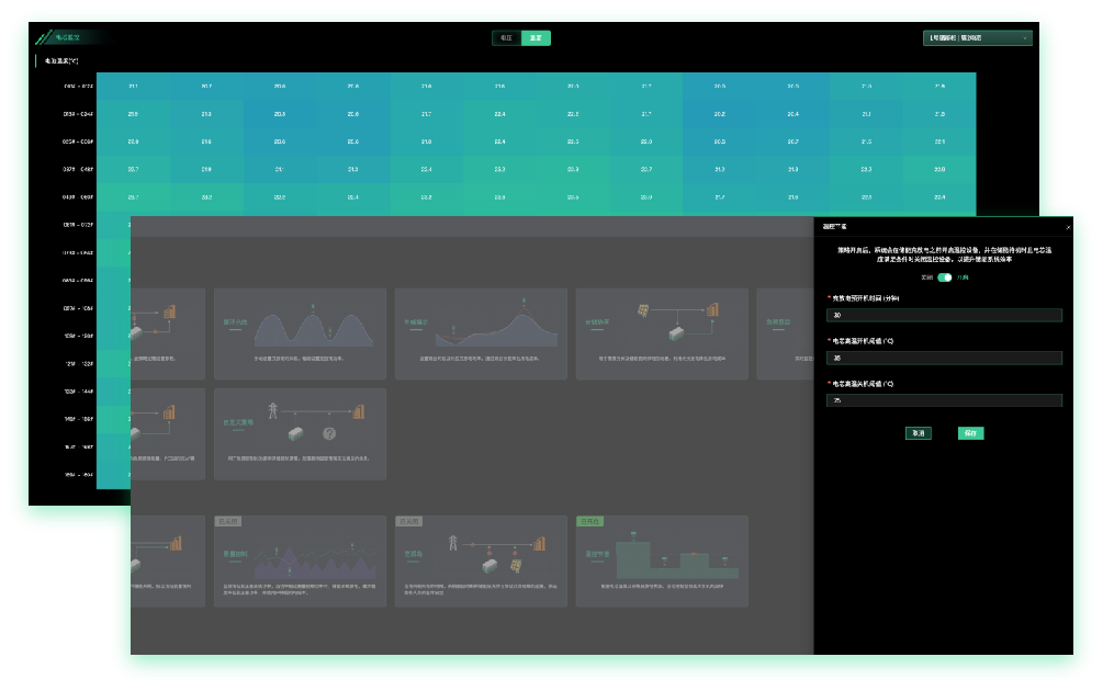 系統支持在儲能充放電之前預開啟溫控設備,并在儲能待機時且電芯溫度滿足條件時關閉溫控設備,達到降低能耗的目的。系統還支持在夜間室外環境溫度相對低時,提高溫控系統的自動制冷閾值,提升儲能系統效率。