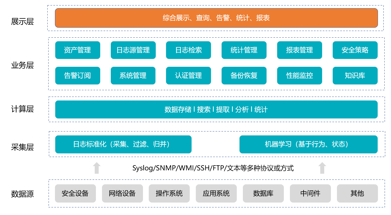 包括資產(chǎn)管理、日志源管理、日志檢索、安全策略、統(tǒng)計(jì)報(bào)表等一系列用戶實(shí)際使用業(yè)務(wù),用戶通過不同業(yè)務(wù)功能對(duì)系統(tǒng)進(jìn)行不同的管理操作。