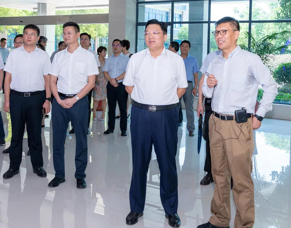 高南董事長接待區委領導,帶領海陵區企業家參觀云涌科技,并就上市經驗作分享。