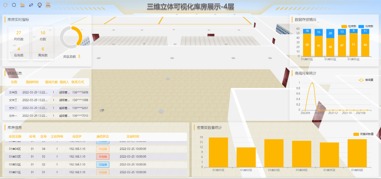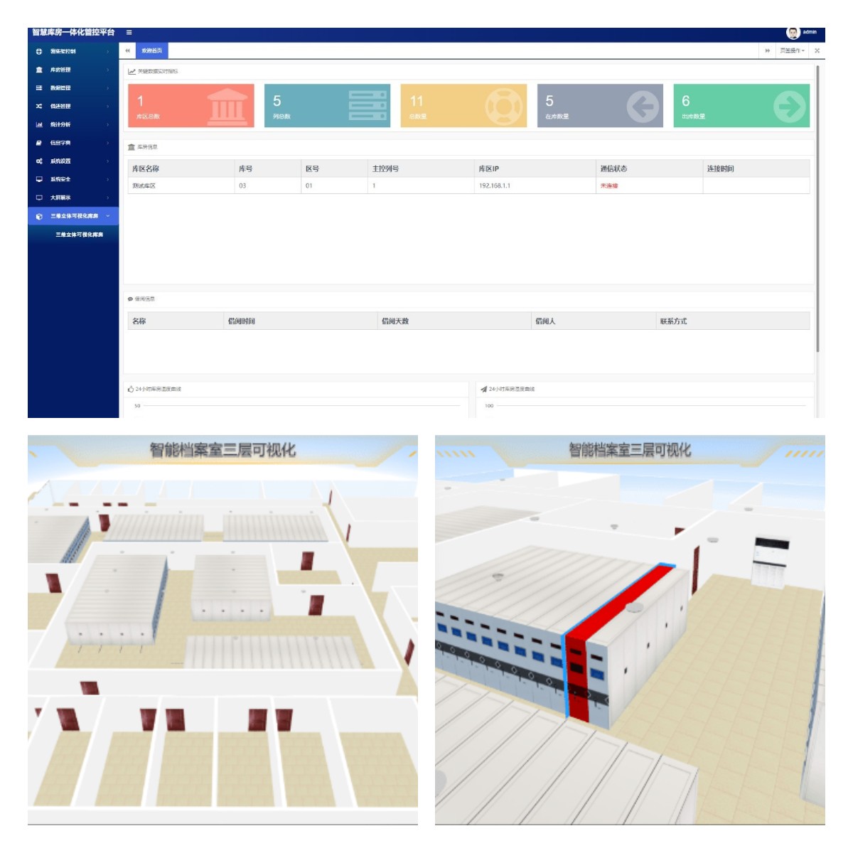 - 通過三維數(shù)字化庫房,可實(shí)現(xiàn)業(yè)務(wù)數(shù)據(jù)查詢,遠(yuǎn)程檔案設(shè)備操作,全景環(huán)控系統(tǒng)設(shè)置,安全態(tài)勢感知上報(bào)等功能,助力用戶數(shù)字化轉(zhuǎn)型。