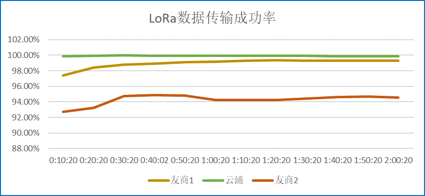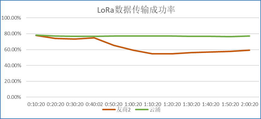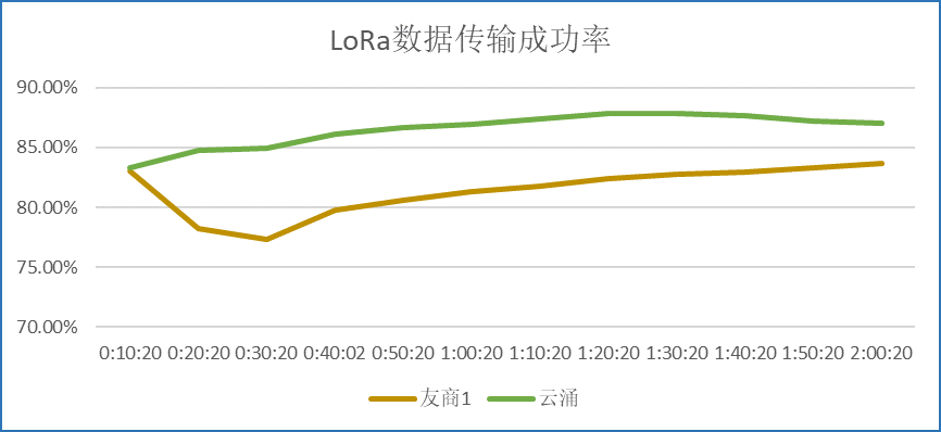 ? ? ? 在測試環(huán)境穩(wěn)定且一致的條件下,通過同樣的連接方式,對比云涌LORA數(shù)傳電臺和另外兩家友商設(shè)備的測試結(jié)果,可以得出:云涌科技的LoRa DTU擁有更好的抗干擾能力,而且在同頻干擾的情況下,傳輸?shù)某晒β矢撸瑐鬏數(shù)姆€(wěn)定性更好。
